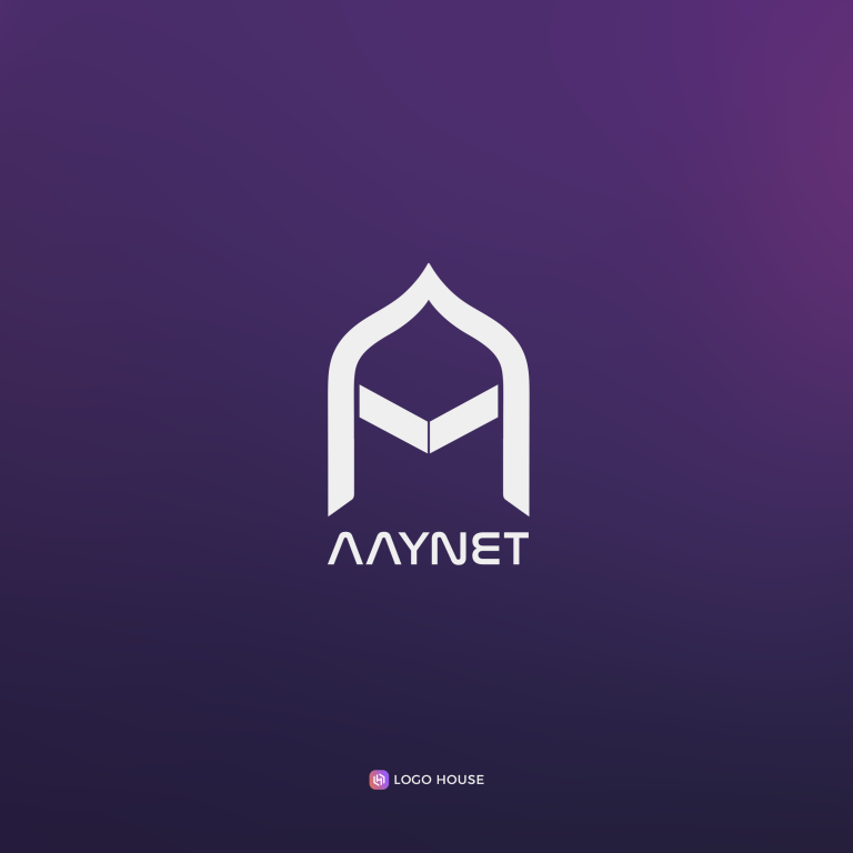 نموذج لشعار رسومي باستخدام حرف A على شكل محراب ومصحف، معبراً عن تخصص الشبكة في نشر القرآن الكريم وعلومه